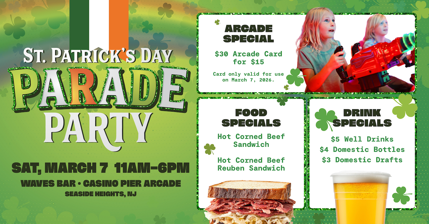 Bring your St. Patty’s Parade Day crew to Waves Bar & Casino Arcade!